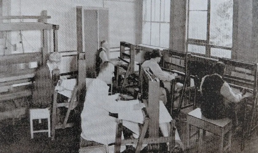In 1938 opent Pameijer de eerste werkinrichting. Dit is een plek waar mannen in een rustige omgeving kunnen werken aan hun herstel. Ze maken meubels, repareren schoenen of doen ander praktisch werk, zoals werken in de weefkamer. Het belangrijkste doel is niet productie, maar het vinden van rust, ritme en zelfvertrouwen. Tijdens de oorlog blijkt de werkinrichting ook een veilige plek waar mensen steun vinden bij elkaar. Werk is niet alleen om geld mee te verdienen, maar het helpt vooral om je sterk en nuttig te voelen.