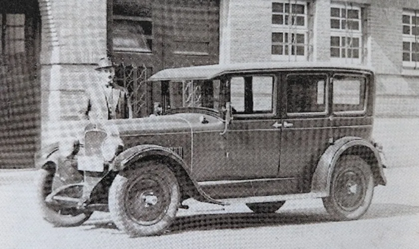 Toch blijven de opnames groeien, wat zorgt voor een fundamentele omslag. Voor het eerst wordt structureel ingezet op begeleiding buiten de muren van de inrichting, zodat mensen weer kunnen meedoen in de samenleving. Deze gedachte is ook nu nog heel belangrijk. Op de onderstaande foto zie je een medewerker bij de auto waarmee hij huisbezoeken voor de buitendienst aflegt.
