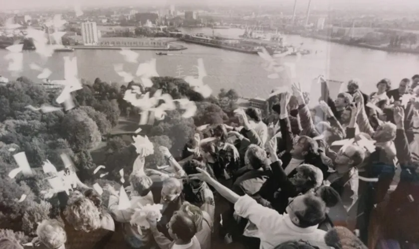 In deze periode legt Pameijer de basis voor wat we nu ‘inclusie’ noemen. Cliënten gaan werken bij bedrijven, wonen zelfstandig met begeleiding en nemen deel aan allerlei buurtactiviteiten. Ook familie en vrijwilligers worden steeds belangrijker. De organisatie leert dat meedoen alleen werkt als iedereen samenwerkt: gemeenten, werkgevers, welzijnsorganisaties, scholen, woningcorporaties, buurten en begeleiders. Daarom ontstaan projecten waarbij leren, werken en ontmoeten elkaar versterken. Zoals het baanbrekende project ‘Individueel wonen’ in 1992. Op de foto strooien de aanwezigen vanaf de Euromast papierstrookjes over de stad uit met daarop de tekst: ‘Vanaf 9 oktober is uw stad een stukje leuker’.