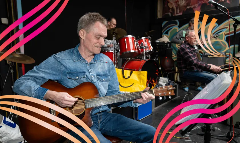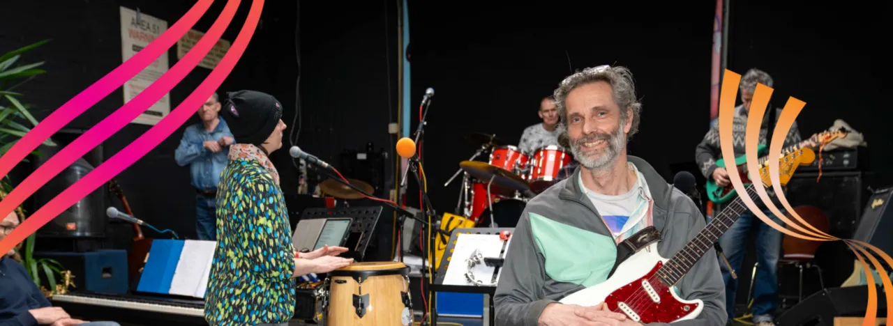 Pameijer bestaat 100 jaar. Dit jubileumjaar delen we elke maand het verhaal van een medewerker die óók een jubileum viert. Ze vertellen over hun werk, leermomenten en mooie, pittige en grappige herinneringen. Over wat het vraagt om dit werk te doen. Deze maand een kleine uitzondering: bandcoach Mark Paauwe vertelt over het 15-jarig bestaan van de Niemand Minder Band.